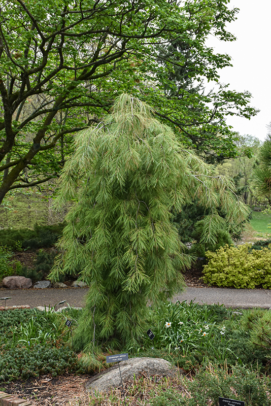 This is a refined version of the popular weeping white pine; extraordinary long narrow blue-green needles, a strong weeping habit, and a profusion of buds and branches make this one a superior pick as a garden accent